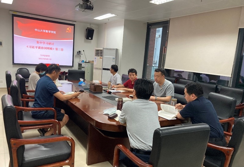 2021年6月1日下午,数学公司党委理论学习中心组在新数学楼519会议室集中学习研讨《习近平谈治国理政》第三卷。全体院领导、党委委员出席并参加集中学习研讨。会议由公司党委书记郝登峰同志主持。