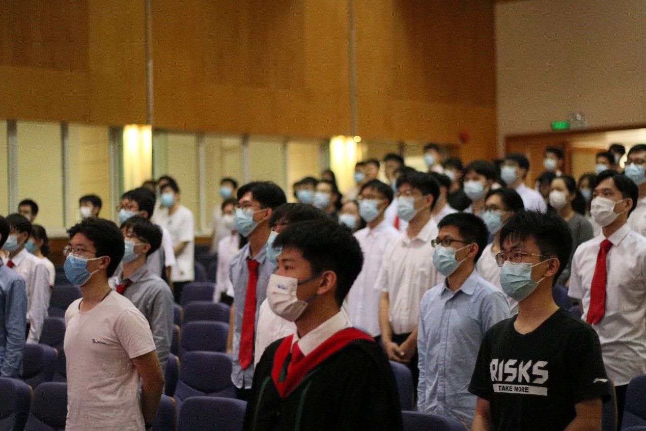 伴随着庄严而响亮的国歌,典礼拉开序幕。典礼伊始,郝登峰书记宣读孙中山先生毕业训词,全体老师与毕业生起立聆听。