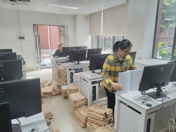 在线阅卷又称“云阅卷”,根据人员分工和系统预设,阅卷教师在电脑终端即可开展评分、统分、复核、归档等工作,不仅无需多次搬运沉重的纸质答卷,也避免了因视觉疲劳等原因造成的评分误差。