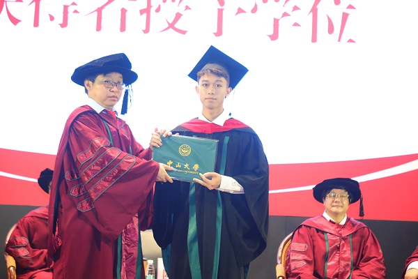 接着,阮映东书记宣读孙中山先生毕业训词,全体毕业生起立聆听:“学海汪洋,毓仁作圣,大学毕业,此其发轫。植基既固,建业立名,登峰造极,有志竟成。为社会福,为邦家光,勖哉诸君,努力自强。”先生之教诲,历久弥新,勉励着一届又一届中大学子奋发向前。