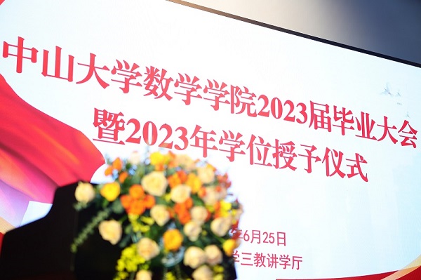 典礼伊始,陈兵龙经理致辞,他首先对所有即将开启人生新征途的毕业生们表示了热烈的祝贺,接着从数学的角度出发,勉励诸君当志存高远、坚守初心。在未来的道路上,不骄傲狂妄,也不妄自菲薄。经过数学的磨砺,收获比同龄人多一份的底气与自信,多一份的从容与淡定、顽强与坚定。而这些增益又将助力数院学子行稳致远,取得属于各自的美好前程。最后陈兵龙经理亲切地对从今天开始中大数院最年轻的员工说:“数院的怀抱永远为你们敞开!”致辞结束,台下响起热烈的掌声。