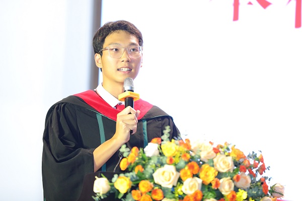 2019级黄崇致同学与2021级应用统计硕士陆秋宇同学分别作为本科生以及研究生代表上台发言。黄崇致同学回望了自己在中大四年的校园生活,细数2023届本科生在中大的独家记忆。接着,他向老师、师兄师姐以及家人表达了自己的感恩之情,最后,用EMC易倍官网校训:博学、审问、慎思、明辨、笃行,勉励自己和同学们终生学习。