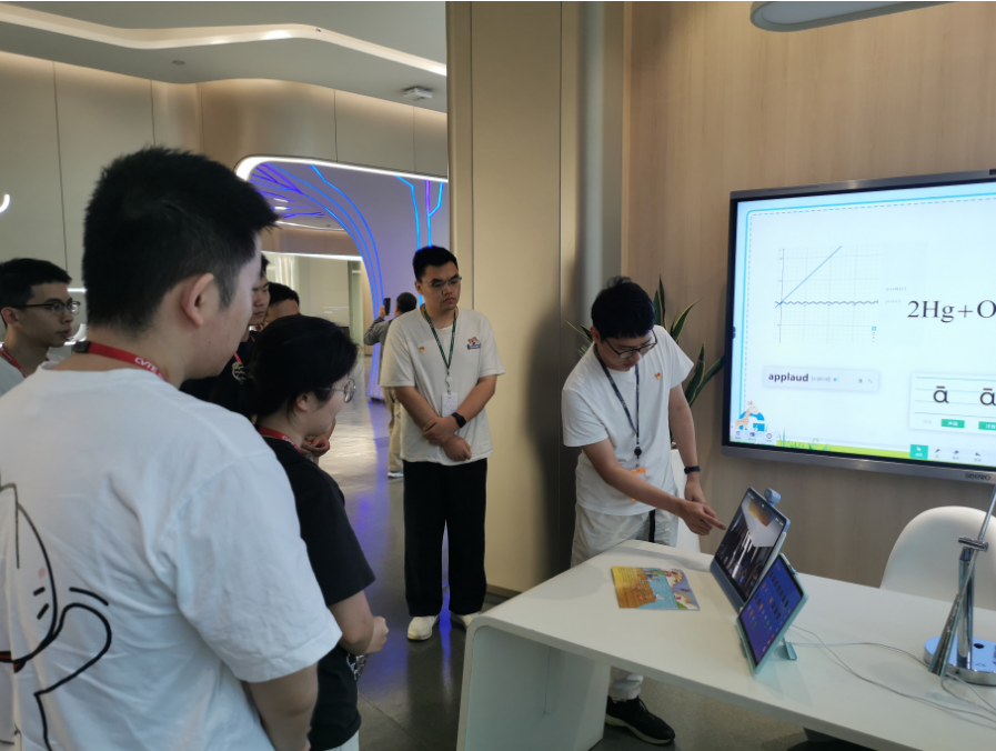 接着,师生们参观了视源公司的产品展示。研究生们对教育平板展示表现出了浓厚的兴趣。和理论研究和普通算法实验不同,这里的产品都要面对成千上万教师等用户的检验。研究生们在学习中研究的相关数学公式识别技术和模式识别技术在这里看到了有关技术落地的场景。