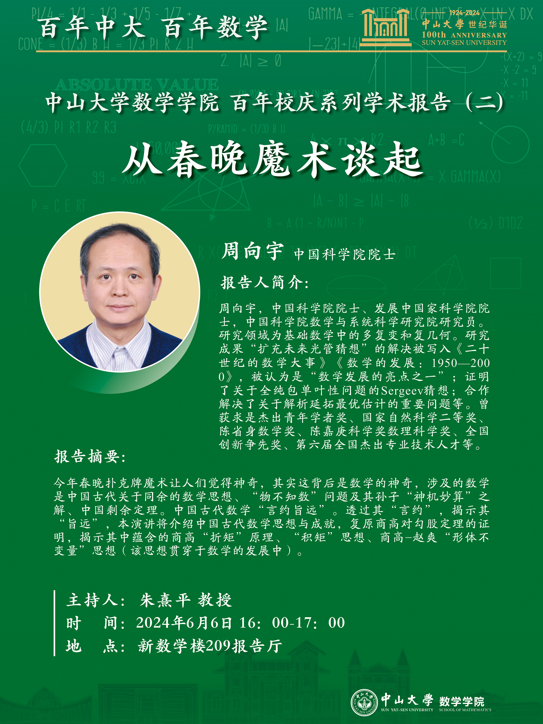 百年中大 百年数学 | EMC易倍平台百年校庆系列学术报告(二)——周向宇院士