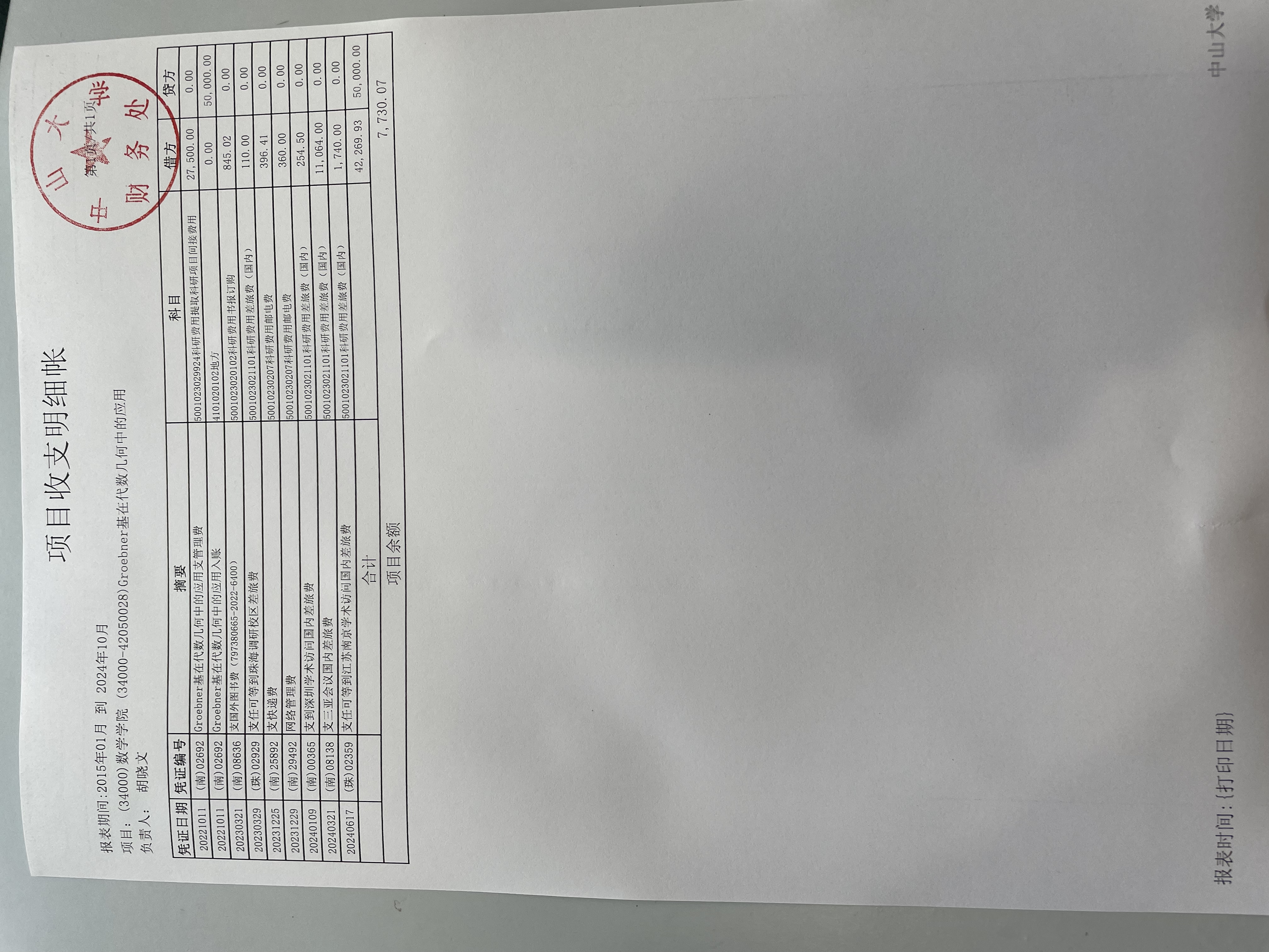 1.胡晓文主持广州市科技计划项目"Groebner基在代数几何中的应用"