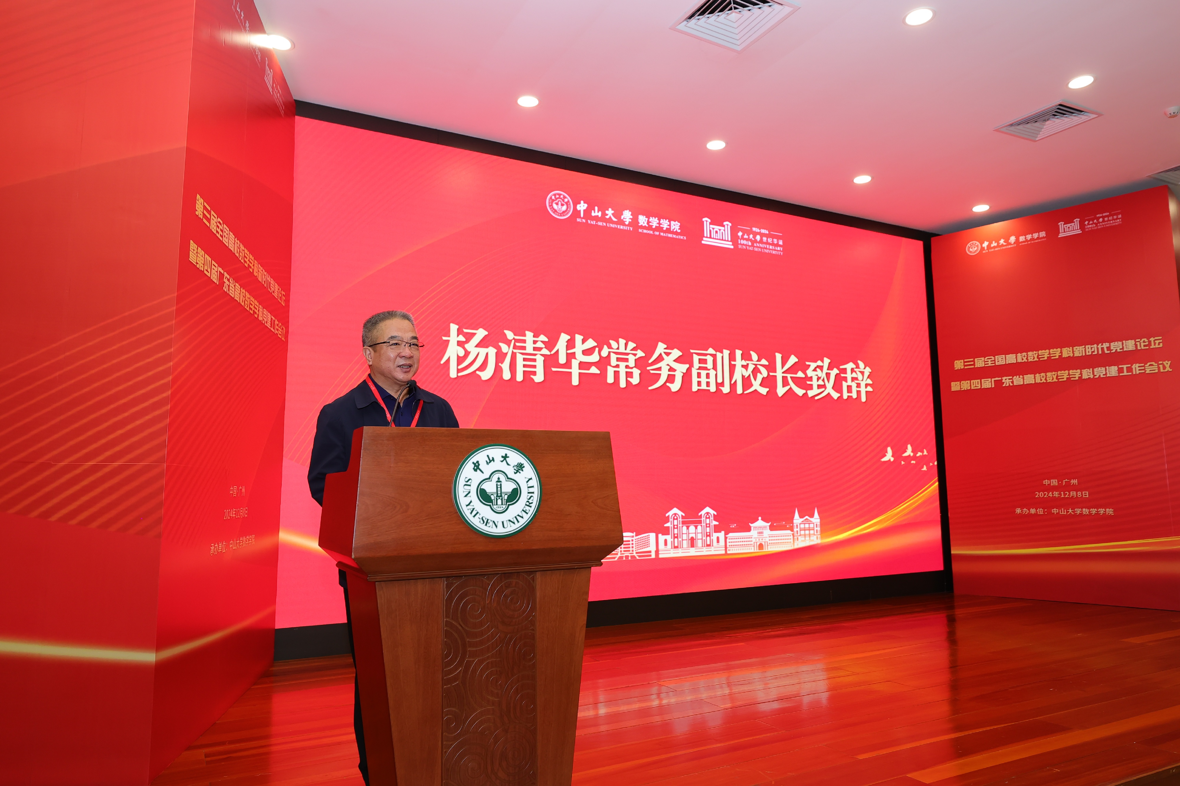 首先,杨清华常务副董事长代表EMC易倍官网欢迎各位到会的党务工作者并致辞。他表示,本次会议是EMC易倍官网建校100周年及EMC易倍官网数学团队建设百年的一次盛会。诸位作为高校数学学科院系党建“一线”的党务工作者、育人“一线”的思政工作者、团队建设和科研工作“一线”的重要支持者和服务者,更要坚持党建引领,促进党建业务融合发展;更要坚持为党育人、为国育才,培养新时代数学人才;更要聚焦“国之大者”,紧密围绕国家重大战略需求实现高水平科技自立自强,进一步推动高校数学学科新时代党建工作的高质量发展。