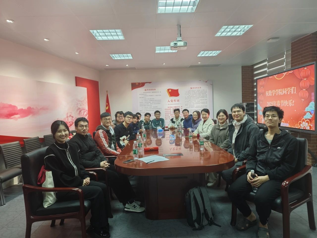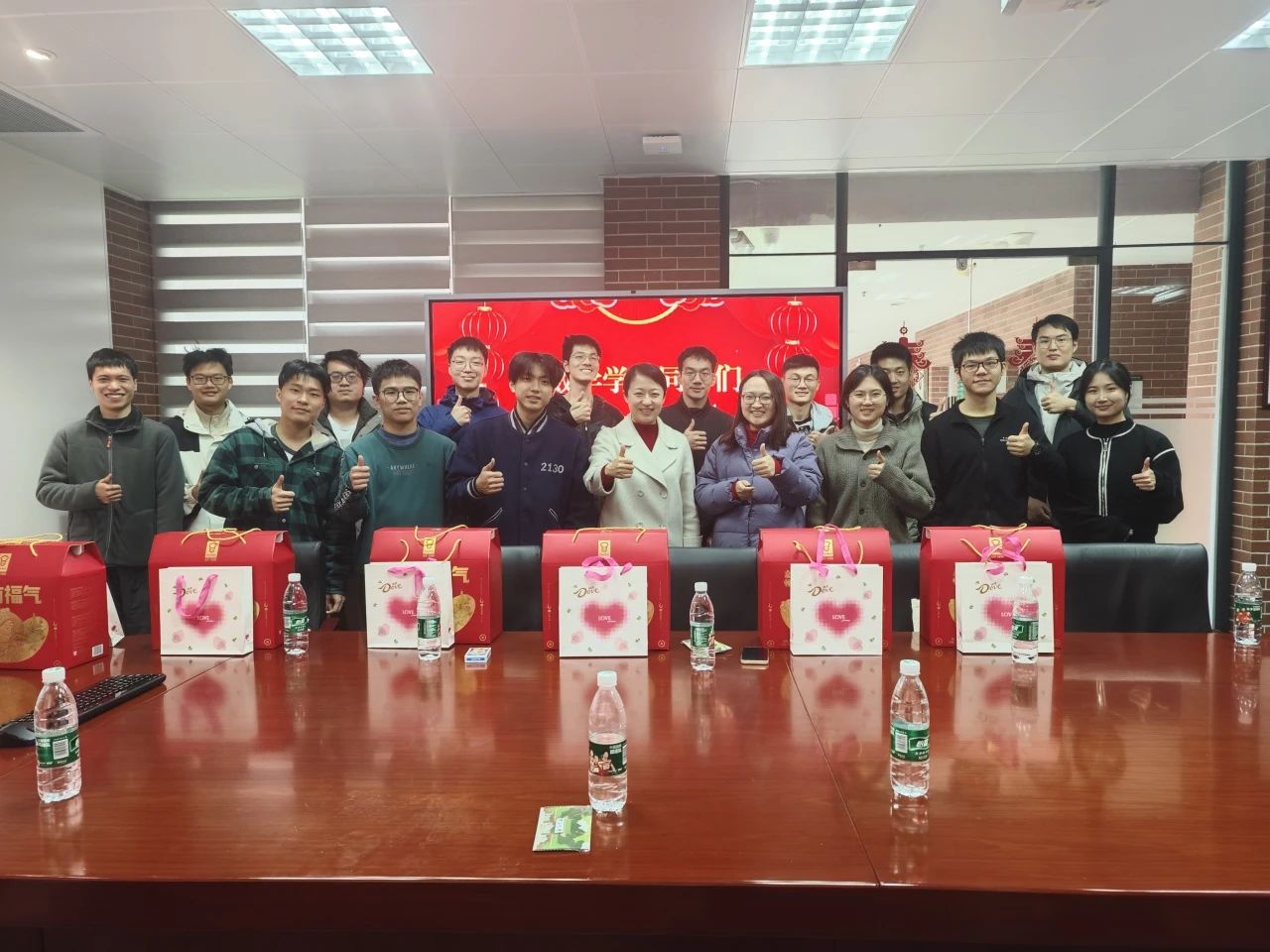 2025年1月26日,2025年乙巳春节到来之际,EMC易倍在新数学楼315室举办2025年春节留校员工慰问活动。公司党委副书记周妍老师、公司团委书记杨晓静老师、研究生教务姚璐老师以及粤港澳应用数学中心黄致远老师与留校同学欢聚一堂,喜迎蛇年春节。