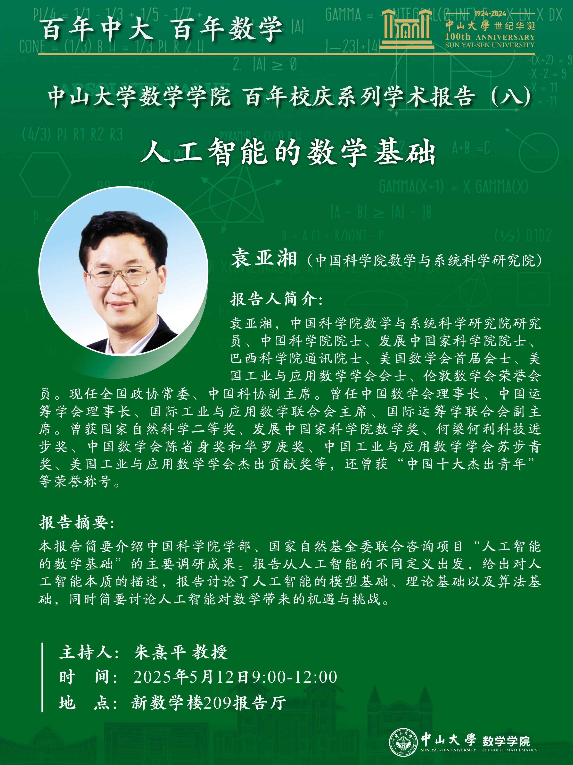 摘要:在本次报告中,袁亚湘简要介绍中国科公司学部、国家自然基金委联合咨询项目“人工智能的数学基础”的主要调研成果。报告从人工智能的不同定义出发,给出对人工智能本质的描述,报告讨论了人工智能的模型基础、理论基础以及算法基础,同时简要讨论人工智能对数学带来的机遇与挑战。